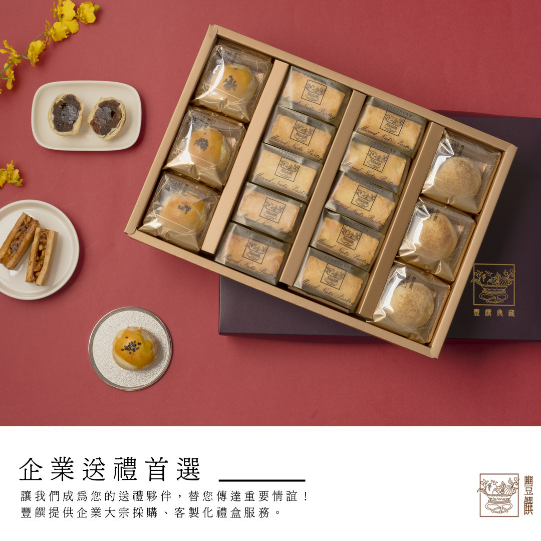 送禮最佳選擇,三款經典口味(雲豆松子蛋黃酥、白鳳豆梅子酥、堅果蜜蕾酥/堅果塔)一次滿足,單入包裝禮盒,精選高級禮盒,送禮或珍藏皆宜。品味台中的頂級糕點,尊享美味的滋味。立即預訂三元御禮。